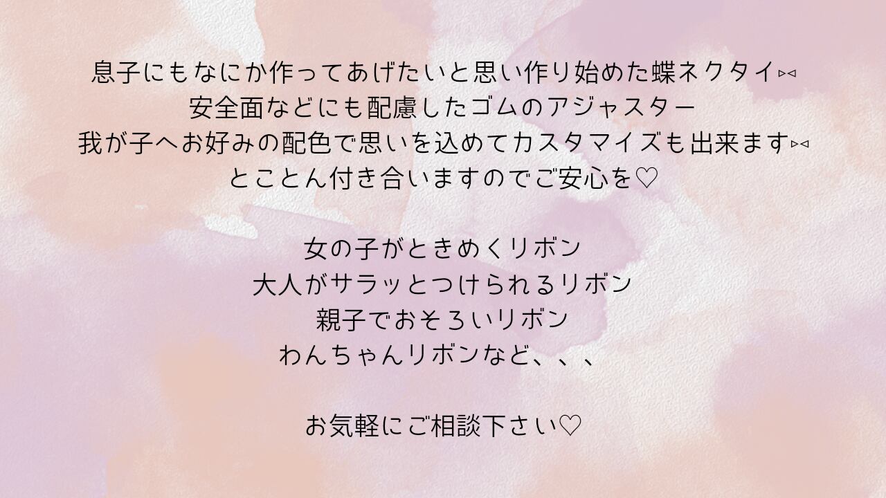 数ある中からご覧いただきありがとうございます♡ 当店、人気No.1のリボン▹◃ 入園式・卒園式・結婚式・誕生日・ハーフバースィなどのお祝いにピッタリの蝶ネクタイ▹◃ 蝶ネクタイをするだけで シャキッ!!とキマる♡ カッコ可愛いフォーマルな姿に キュンキュン間違いなしです♡ ヘアピン・ヘアゴム選べます♡ 親子、兄弟、姉妹でお揃いコーデは いかがですか?♡ □形□ A or Bからお選び下さい。 □サイズ□ 約9(横)×4(縦) □装着パーツ□ 《蝶ネクタイ》 小さいお子様でも安全につけて頂けるように アジャスターはゴムで出来ています。 プラスチックのホックはわちゃわちゃ 動いちゃうやんちゃBoyもつけ外しが 簡単なのでご安心ください!! 万が一、つけてる最中にやんちゃBoyが 逃げちゃったってゴムなのでびよぉ〜ん!! 約25㎝~30㎝まで調節可能です♡ 《ヘアゴム》 ゴム留めが付いているので万が一 ゴムが切れてしまったり伸びてしまっても 新しいゴムに付け替えてまた使って いただけます♡ 自分自身、ヘアゴム買ってゴムがダメに なっちゃってでもゴム変えられず まだ全然使えるのにもったいない。。。 さようなら〜。:゚(;´∩`;)゚:。って事があったので 少しでも長く使ってもらえるように♡ 《ヘアピン》 やっとこピンを使用しています。 金属の部分が当たらないようにリボンで巻いています。 滑り止めもついてますので薄毛のベビーちゃんでも安心して付けられます♡ ピンのサイズは35mm、47mmを ご用意しています。 基本、リボンのサイズでこちらで決めさせて頂いてます♡